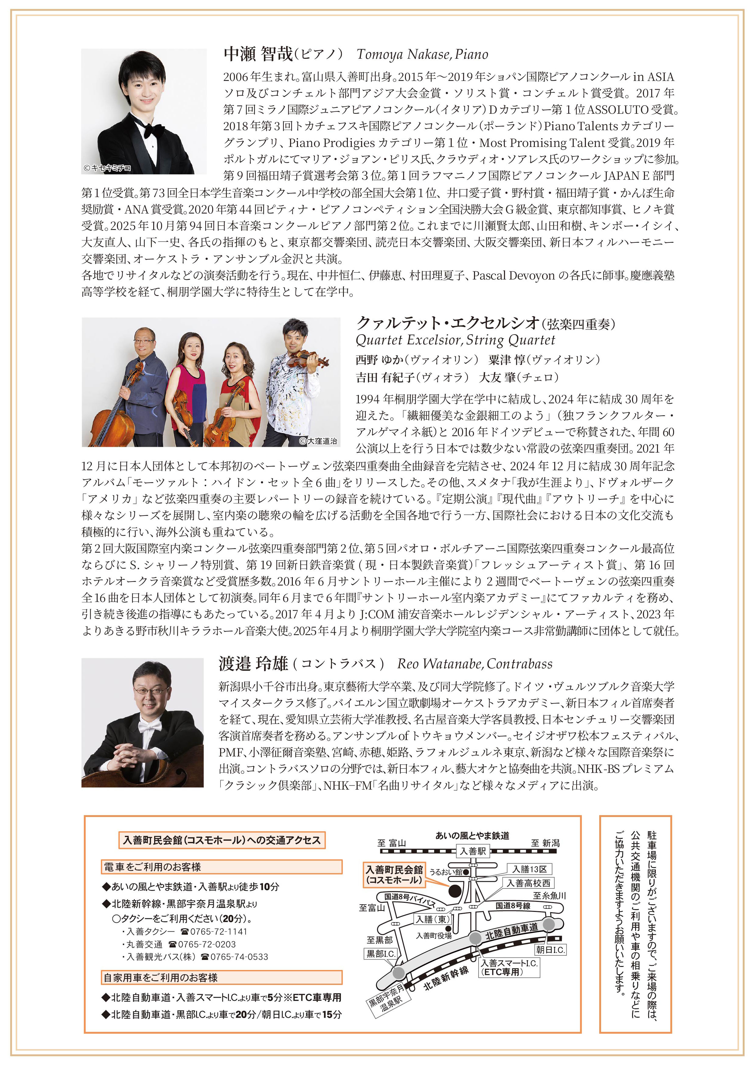 中瀬智哉 × クァルテット・エクセルシオ × 渡邉玲雄