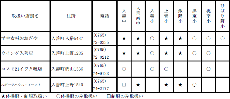 A3.上記の「体操服・制服等支援事業取扱加盟店舗一覧」をご確認ください。